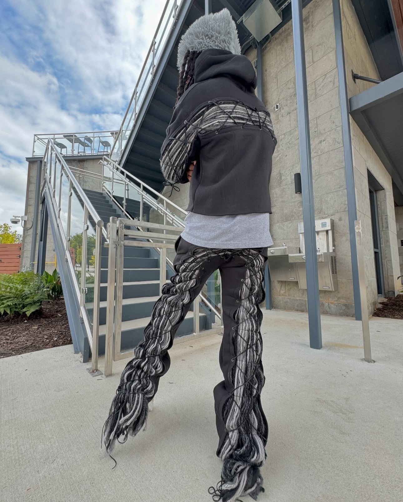 - Yarn Colors: Medium Grey, Dark Grey, Black